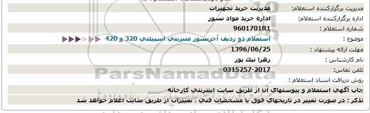 موضوع : استعلام دو ردیف آجرنسوز منیزیتی اسپیلنی 320 و 420