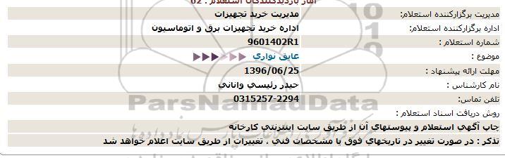 اداره برگزارکننده استعلام: اداره خرید تجهیزات برق و اتوماسیون