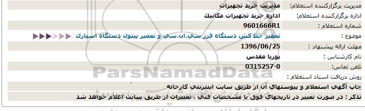 اداره برگزارکننده استعلام: اداره خرید تجهیزات مکانیک