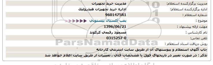شماره استعلام : 9601475R1