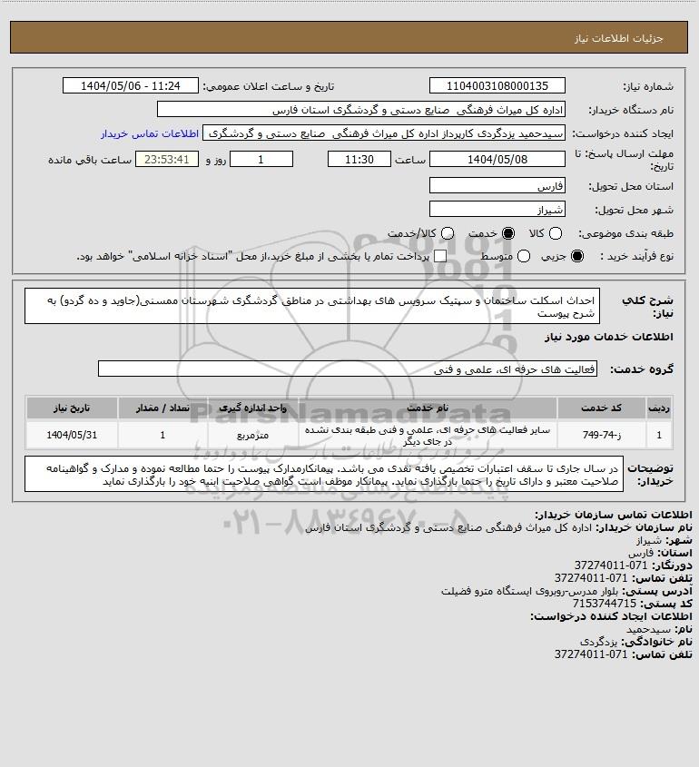 نام دستگاه خریدار:اداره کل میراث فرهنگی صنایع دستی و گردشگری استان فارس