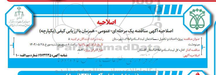 اصلاحیه آگهی مناقصه یک مرحله ای - عمومی- همزمان با ارزیابی کیفی یکپارچه