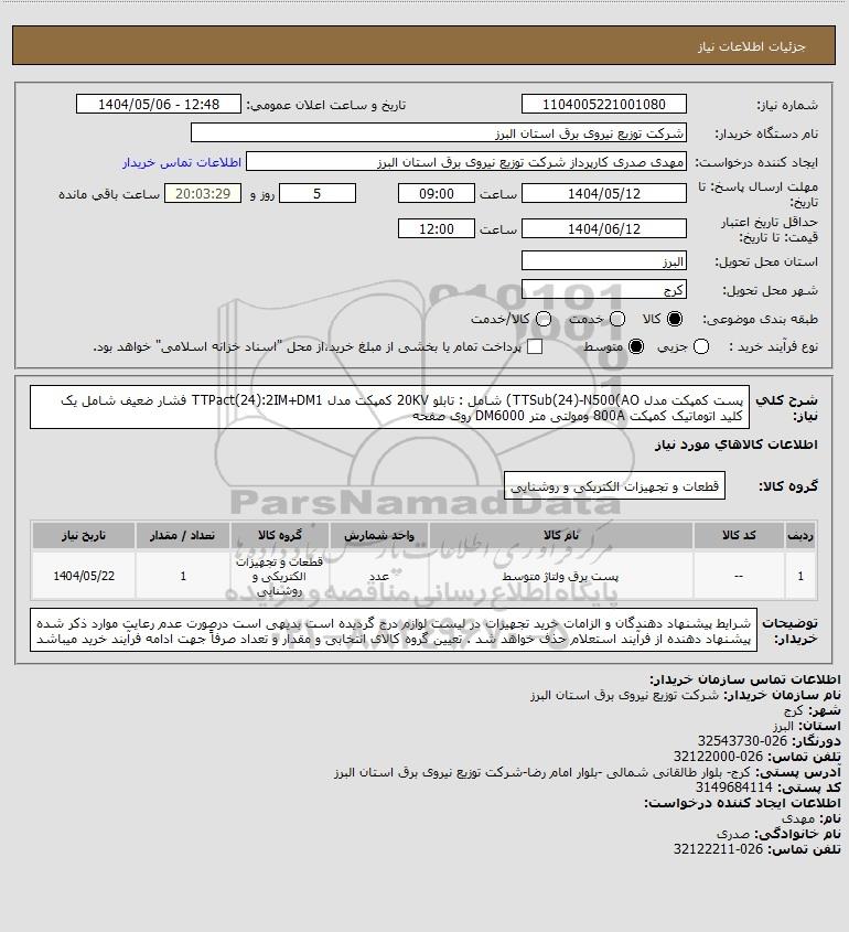 نام دستگاه خریدار:شرکت توزیع نیروی برق استان البرز