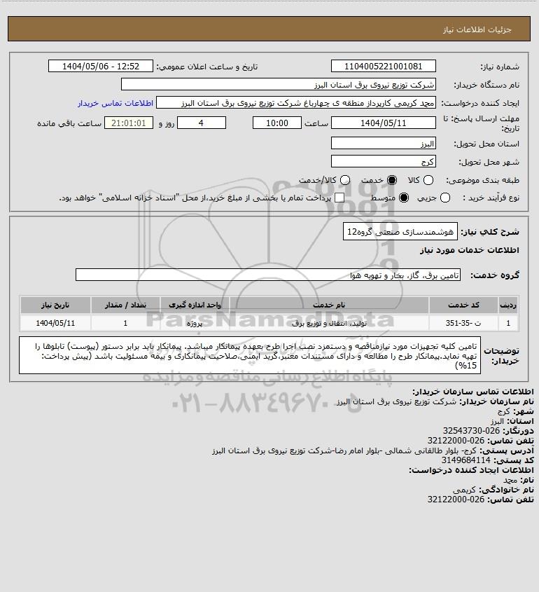 نام دستگاه خریدار:شرکت توزیع نیروی برق استان البرز