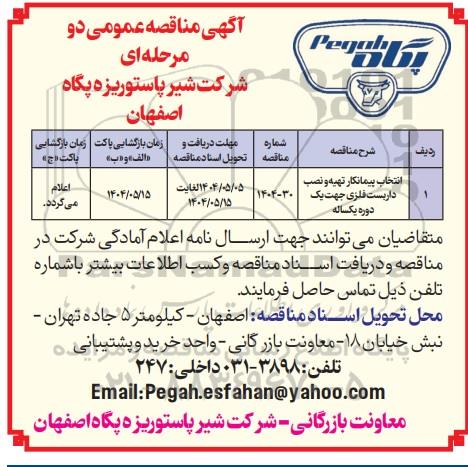 مناقصه عمومی انتخاب پیمانکار تهیه و نصب داربست فلزی جهت یک دوره یکساله از کلیه افراد متخصص و شرکتها واجد شرایط دعوت به عمل میآید در مناقصه با کد خبرگزاری پارس نماد: 9332987 شرکت نمایند.