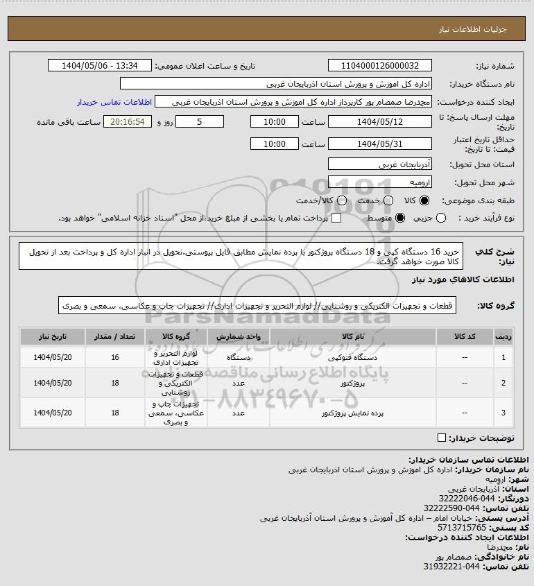 نام دستگاه خریدار:اداره کل اموزش و پرورش استان اذربایجان غربی