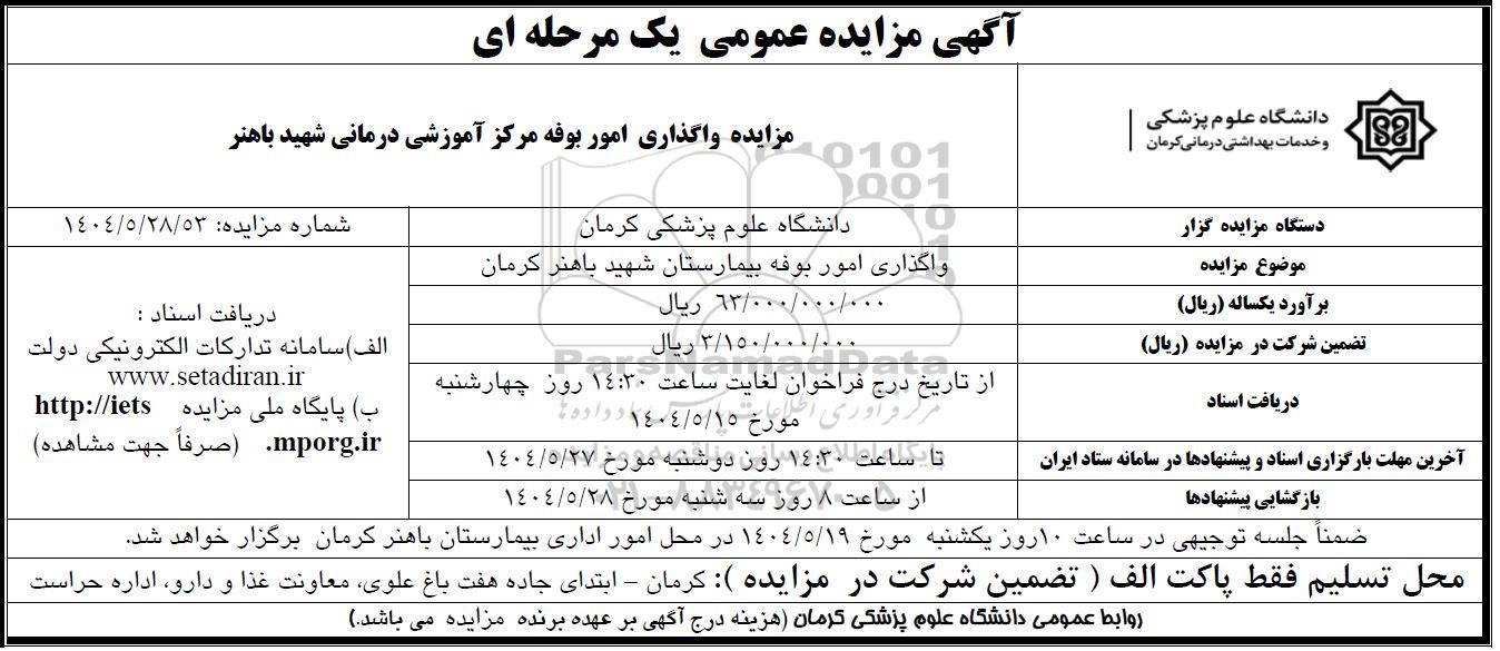 دستگاه مزایده گزار دانشگاه علوم پزشکی کرمان