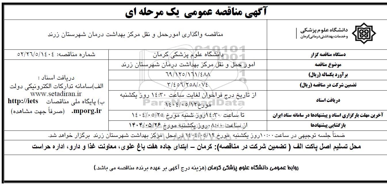 روابط عمومی دانشگاه علوم پزشکی کرمان (هزینه درج آگهی بر عهده برنده مناقصه می باشد.)