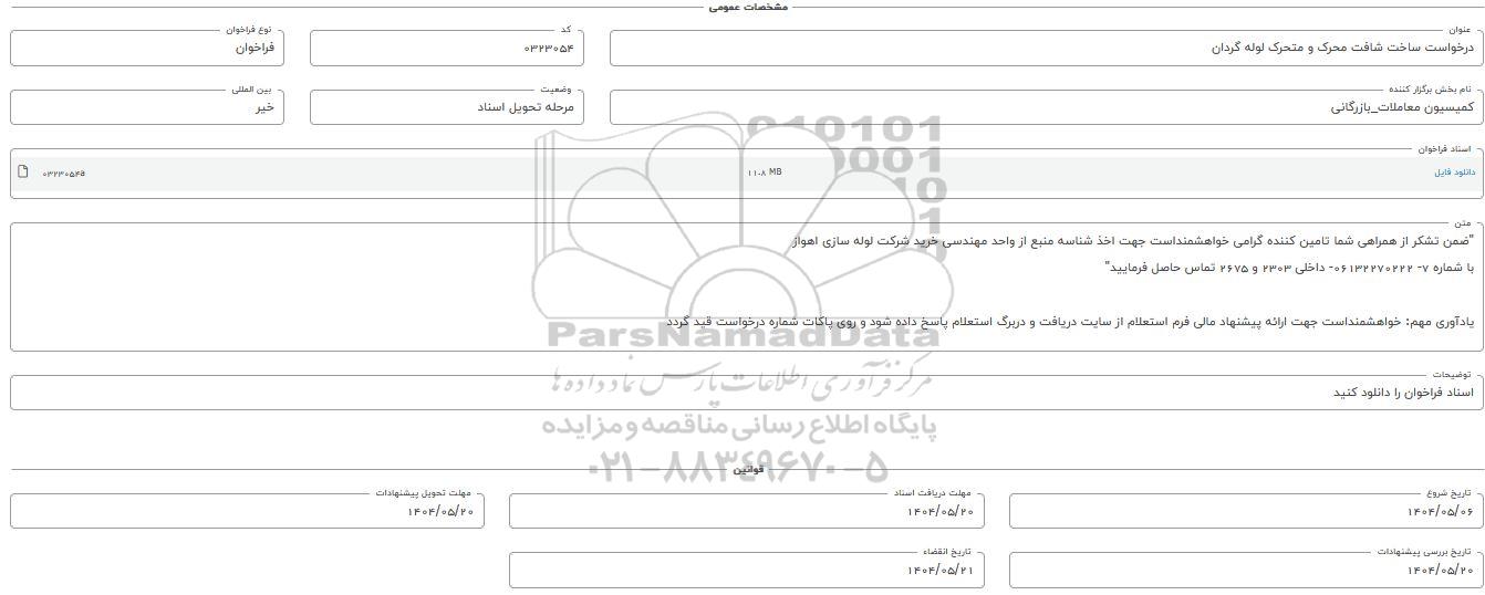 تاریخ بررسی پیشنهادات: 1404.05.20 - تاریخ انقضاء: 1404.05.21