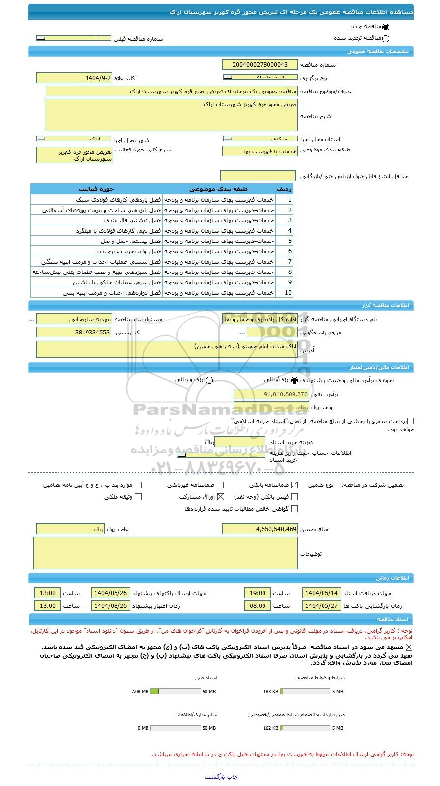 | شرح مناقصه | تعریض محور قره کهریز شهرستان اراک | |||||||||||||||||||||||||||||||||||