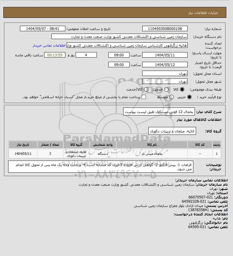نام دستگاه خریدار:سازمان زمین شناسی و اکتشافات معدنی کشور وزارت صنعت معدن و تجارت