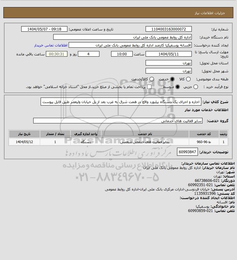 نام دستگاه خریدار:اداره کل روابط عمومی بانک ملی ایران