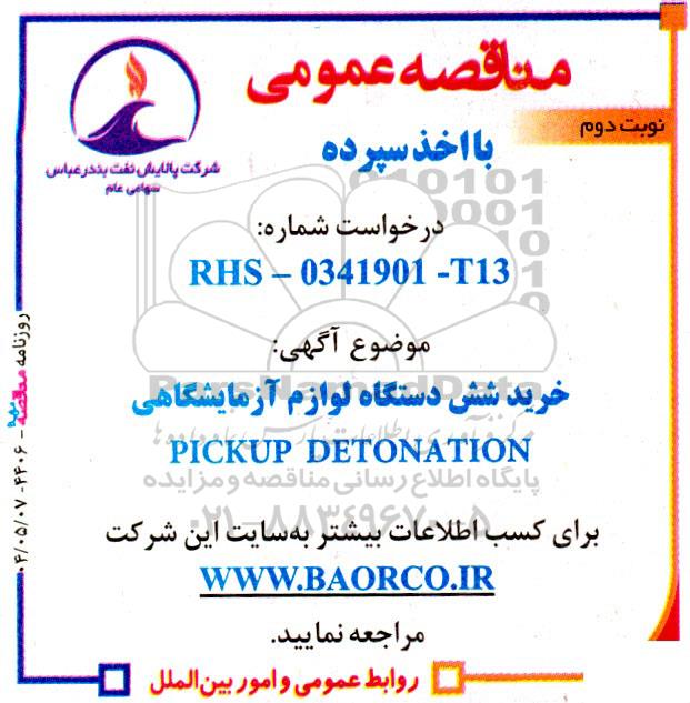 موضوع آگهی: خرید شش دستگاه لوازم آزمایشگاهی pickup detonation