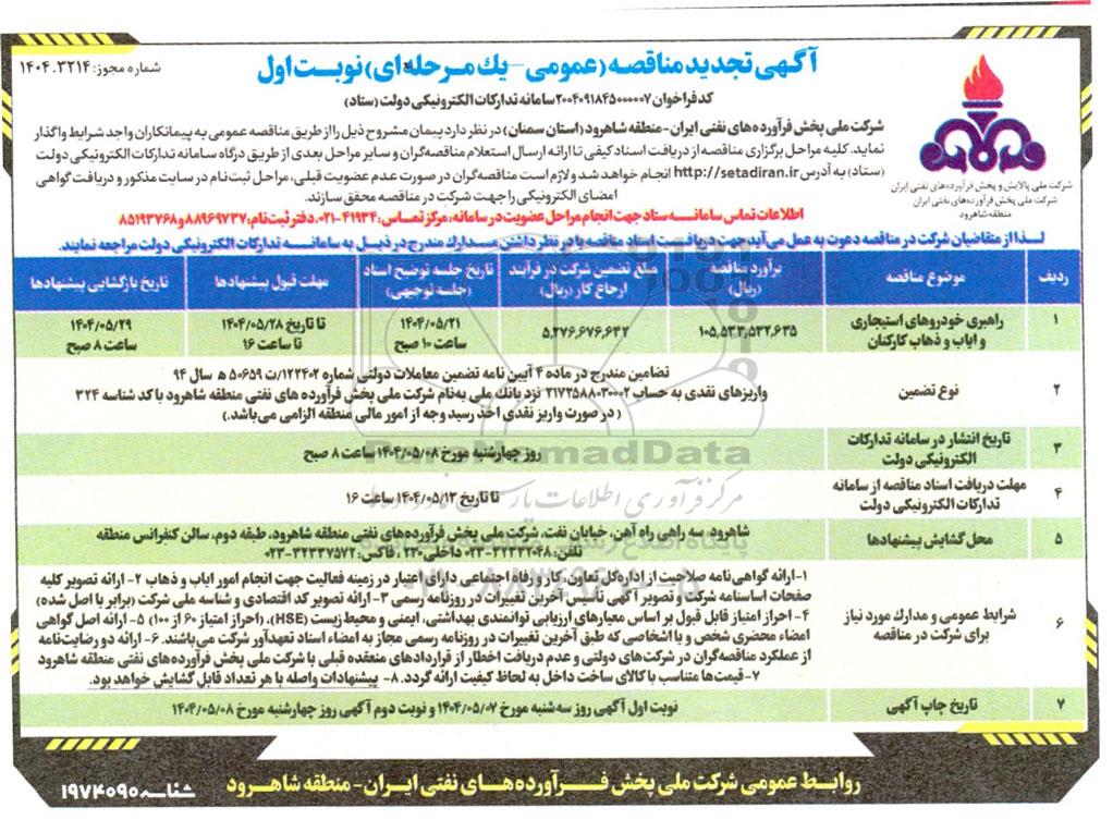 آگهی تجدید مناقصه (عمومی - یک مرحله ای ) - نوبت اول ؟
