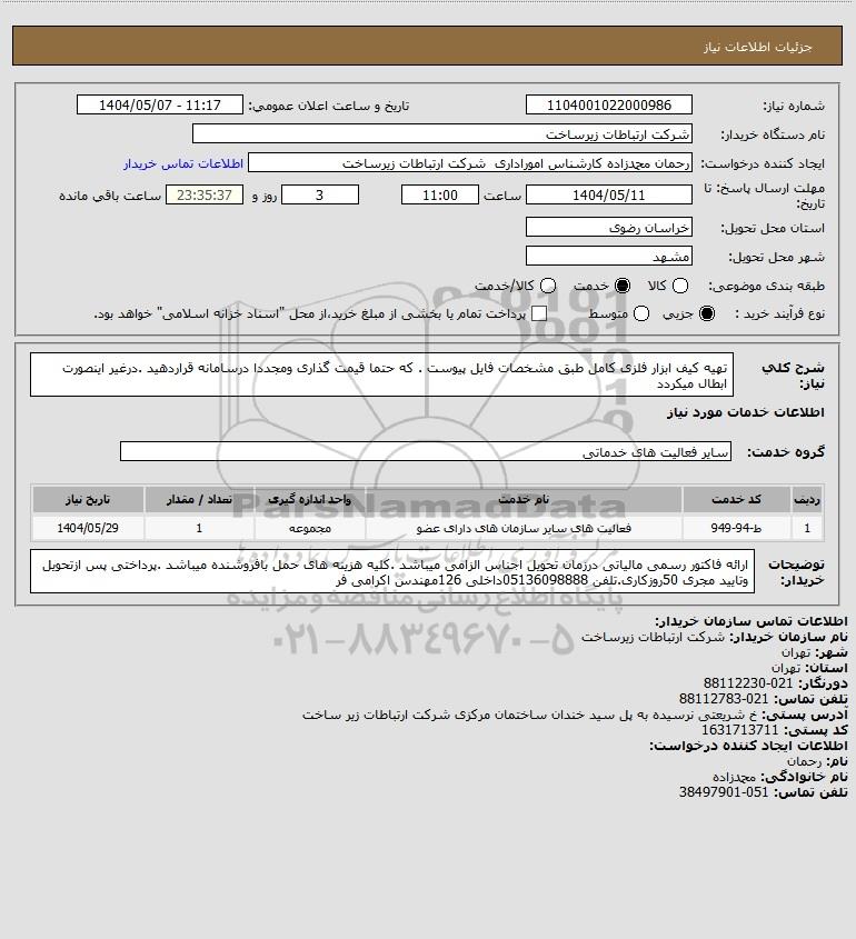 نام دستگاه خریدار:شرکت ارتباطات زیرساخت