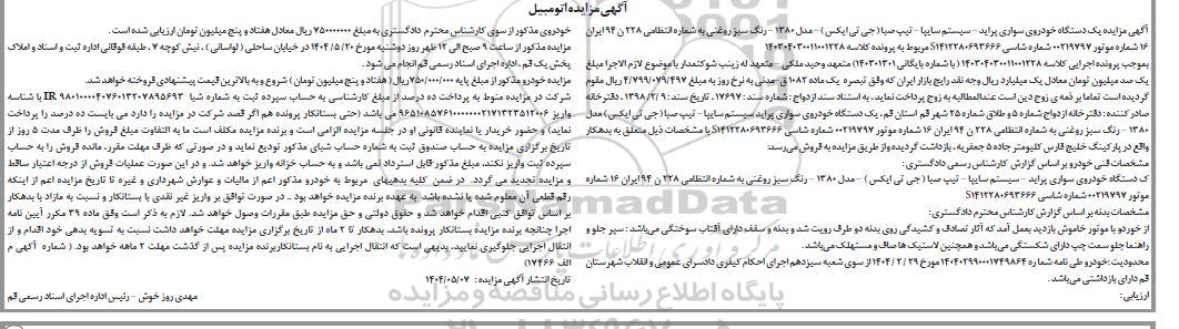 مزایده یک دستگاه خودروی پراید مدل 1380 رنگ سبز , مزایده یک دستگاه خودروی پراید مدل 1380 رنگ سبز