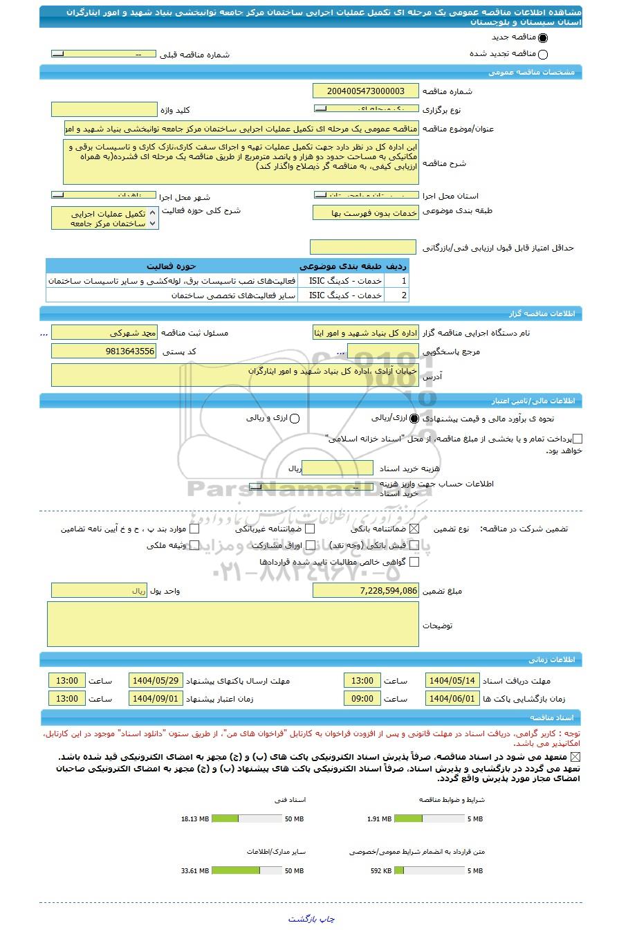 مناقصه مناقصه عمومی یک مرحله ای تکمیل عملیات اجرایی ساختمان مرکز جامعه توانبخشی بنیاد شهید و امور ایثارگران استان سیستان و بلوچستان, مناقصه، مناقصه عمومی یک مرحله ای تکمیل عملیات اجرایی ساختمان مرکز جامعه توانبخشی بنیاد شهید و امور ایثارگران استان سیستان و بلوچستان