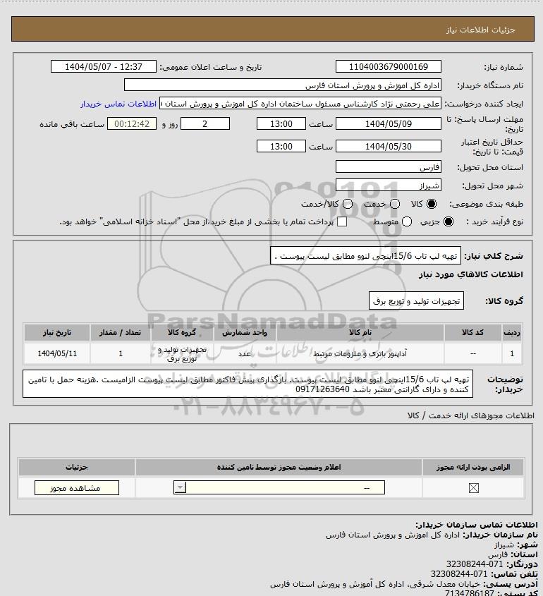 نام دستگاه خریدار:اداره کل اموزش و پرورش استان فارس
