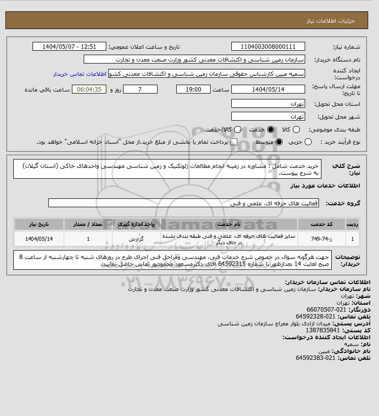نام دستگاه خریدار:سازمان زمین شناسی و اکتشافات معدنی کشور وزارت صنعت معدن و تجارت