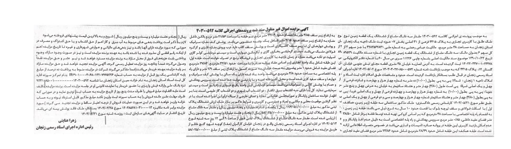 مزایده فروش یک قطعه زمین با کاربری تجاری به پلاک ثبتی 4415 فرعی از 41 اصلی