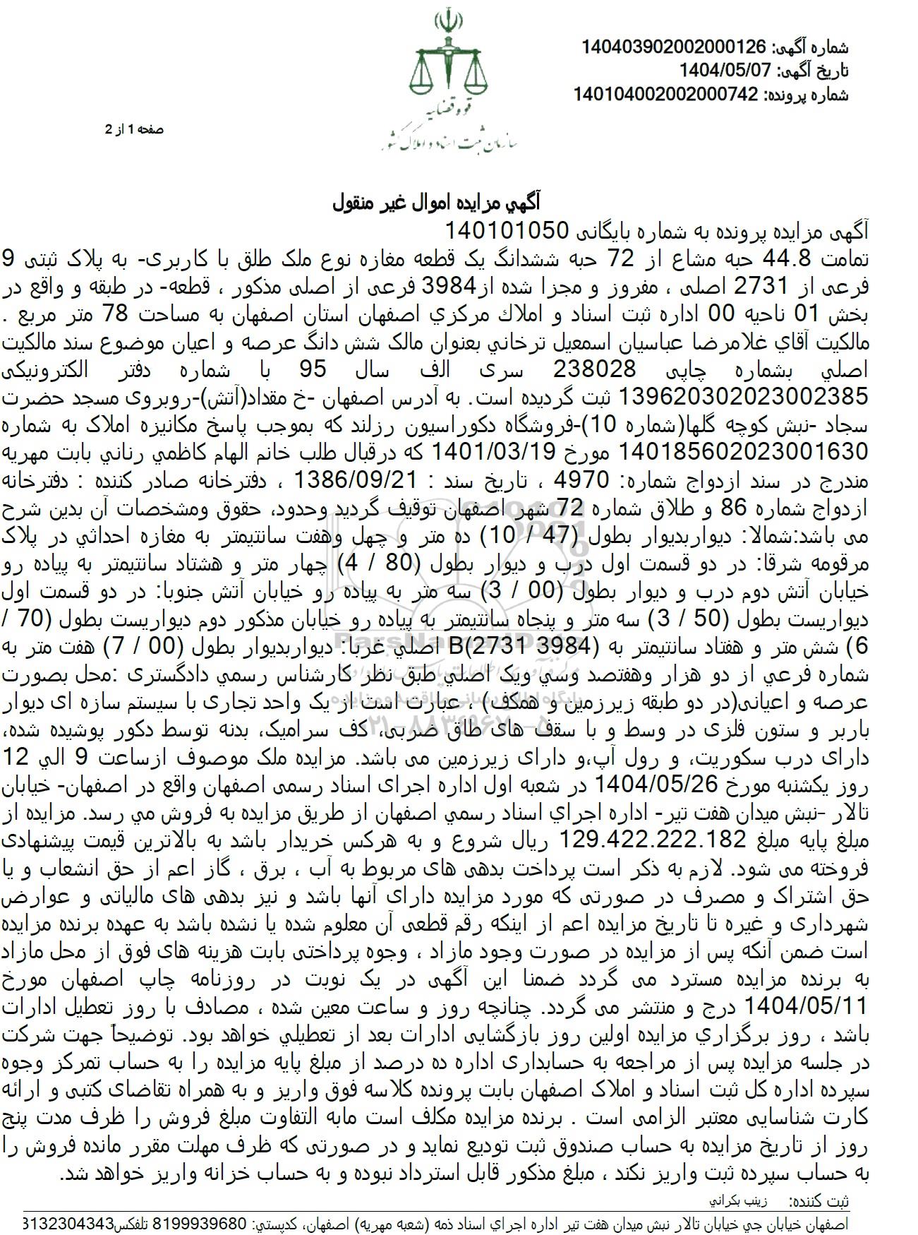 شماره آگهی 140403902002000126