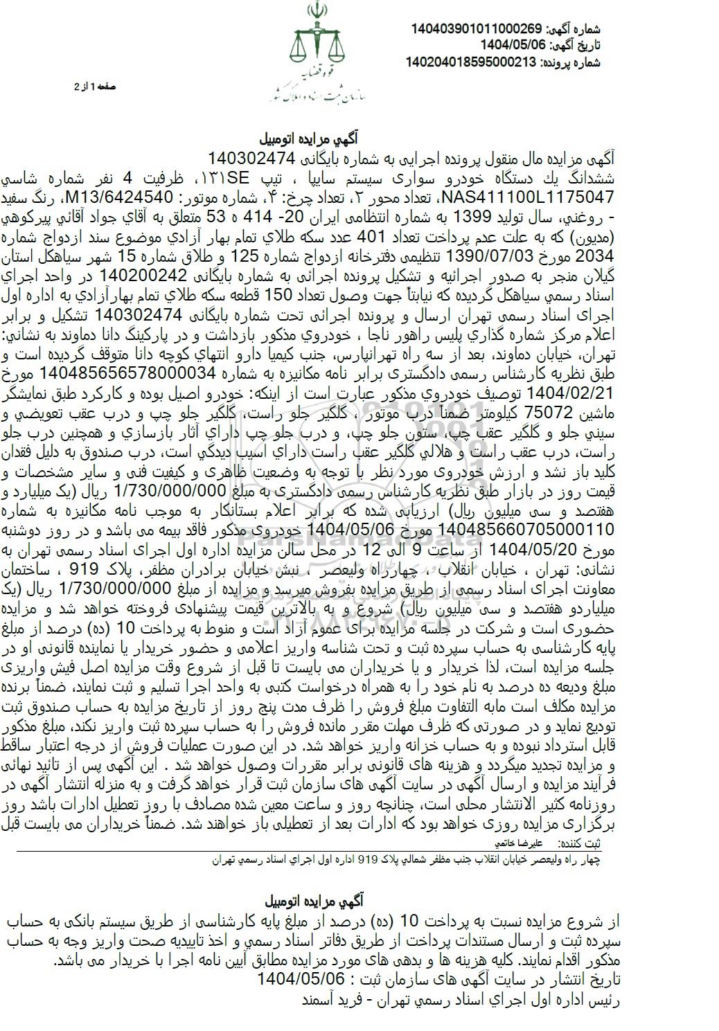 مزایده فروش یک دستگاه خودرو سواری پراید تیپ 131se, مزایده فروش یک دستگاه خودرو سواری پراید تیپ 131se