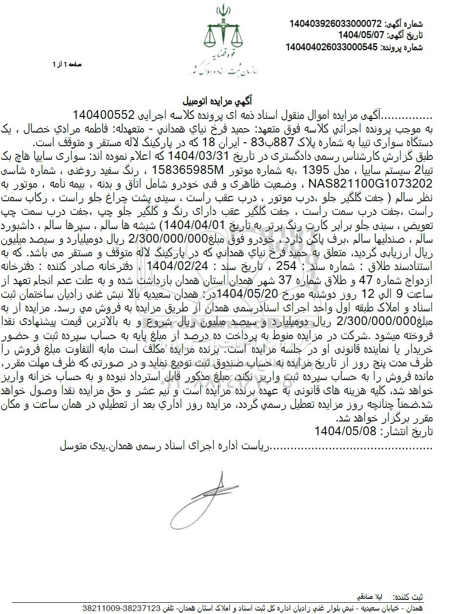 مزایده مورخ 1404.5.20 از ساعت 9 الی 12