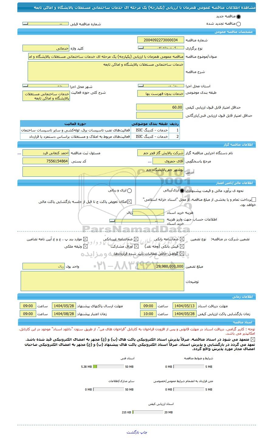 | مبلغ تضمین | 29,980,000,000 | واحد پول | ریال |