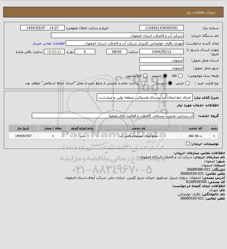 نام دستگاه خریدار:شرکت آب و فاضلاب استان اصفهان