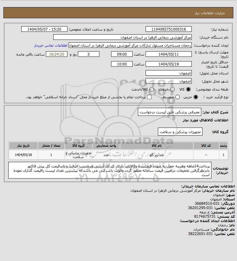 1 -- باند زیر گچ عدد تجهیزات پزشکی و سلامت 1 1404/05/18