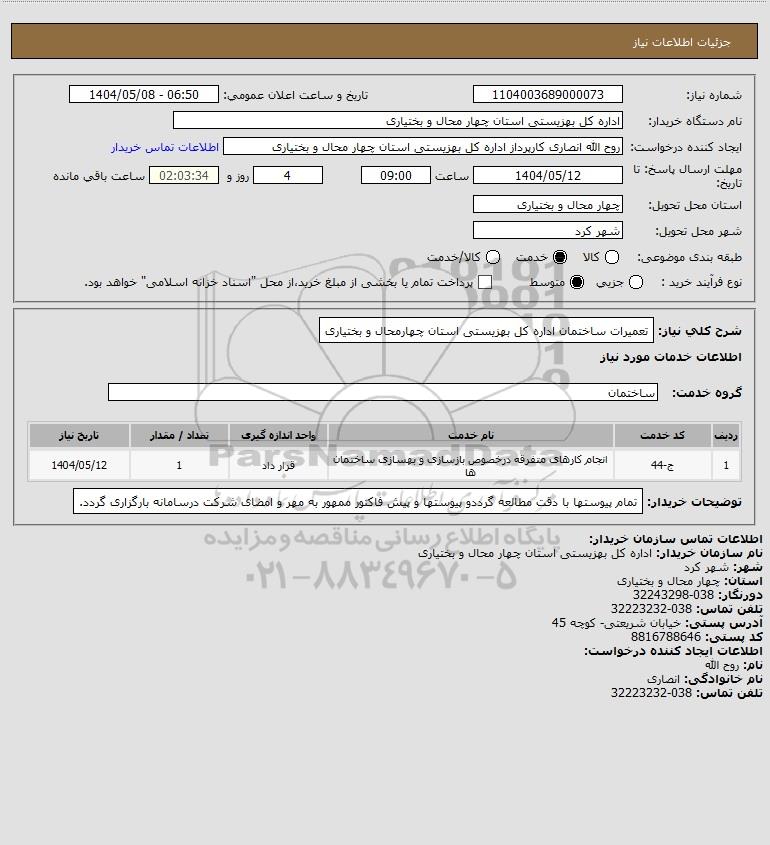 شرح کلی نیاز: تعمیرات ساختمان اداره کل بهزیستی استان چهارمحال و بختیاری