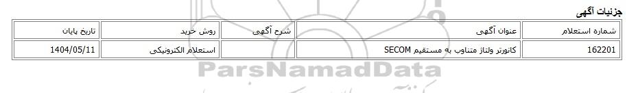 | 162201 | کانورتر ولتاژ متناوب به مستقیم SECOM | استعلام الکترونیکی | 1404/05/11 |