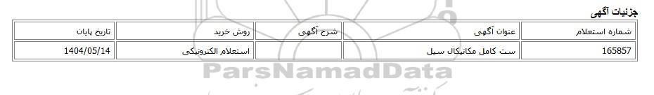 | 165857 | ست کامل مکانیکال سیل | استعلام الکترونیکی | 1404/05/14 |