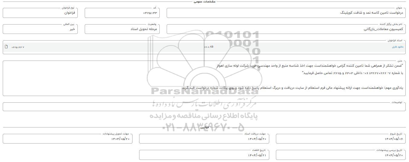 تاریخ بررسی پیشنهادات: 1404.05.20 - تاریخ انقضاء: 1404.05.21