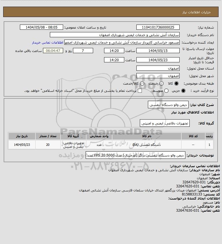 | 1 | -- | دستگاه تنفسی (BA) | عدد | تجهیزات دفاعی، ایمنی و امنیتی | 20 | 1404/05/23 |
