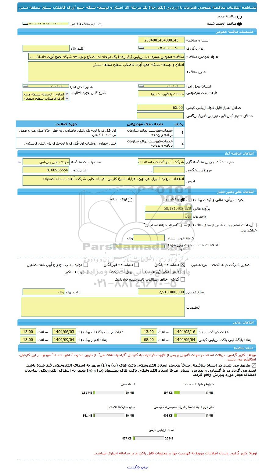 نام دستگاه اجرایی مناقصه گزارشرکت آب و فاضلاب استان اصفهانمسئول ثبت مناقصهمهدی تقی یاررنانی