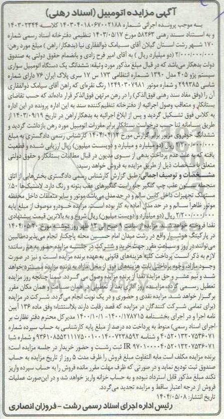 آگهی مزایده اتومبیل