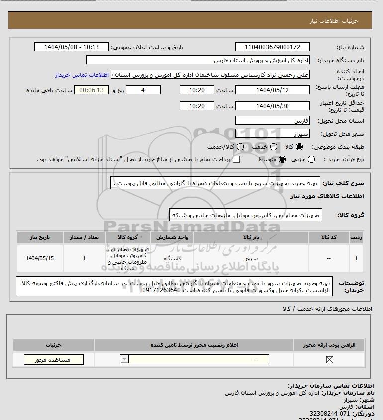 نام دستگاه خریدار:اداره کل اموزش و پرورش استان فارس