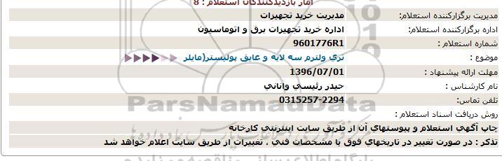 اداره برگزارکننده استعلام: اداره خرید تجهیزات برق و اتوماسیون