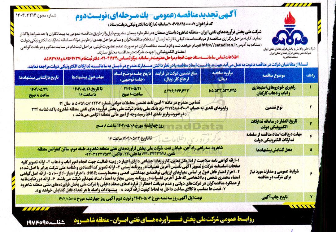 شرکت ملی پخش فرآورده های نفتی ایران - منطقه شاهرود (استان سمنان) در نظر دارد پیمان مشروح ذیل را از طریق مناقصه عمومی به پیمانکاران واجد شرایط واگذار نماید.
