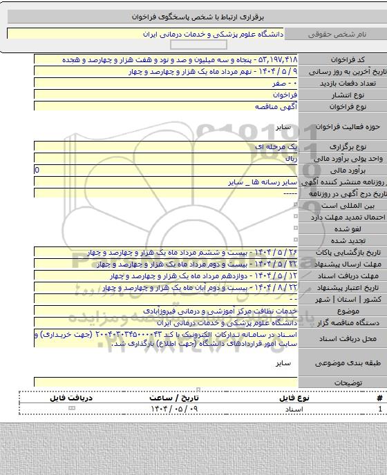 مناقصه خدمات نظافت مرکز آموزشی و درمانی فیروزآبادی, مناقصه, خدمات نظافت مرکز آموزشی و درمانی فیروزآبادی