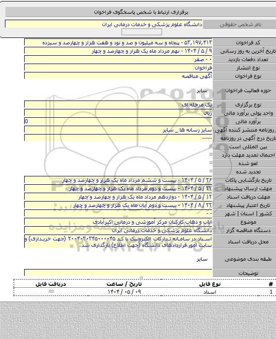 مناقصه ایاب و ذهاب کارکنان مرکز آموزشی و درمانی اکبرآبادی, مناقصه, ایاب و ذهاب کارکنان مرکز آموزشی و درمانی اکبرآبادی