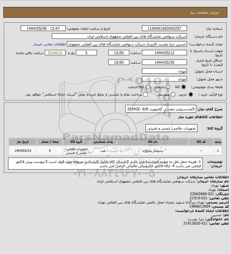 استعلام 5عددسیلندر تنفسی کامبوزیت 2024CE- 6/8, استعلام 5عددسیلندر تنفسی کامبوزیت 2024CE- 6/8