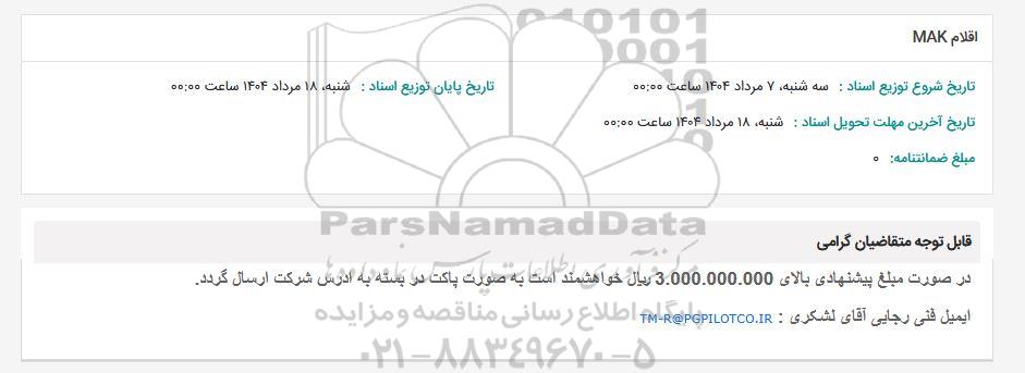 ایمیل فنی رجایی آقای لشکری: TM-R@PGPILOTCO.IR