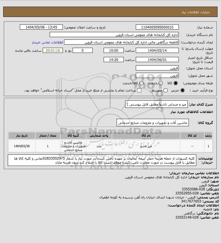 نام دستگاه خریدار:اداره کل کتابخانه های عمومی استان قزوین