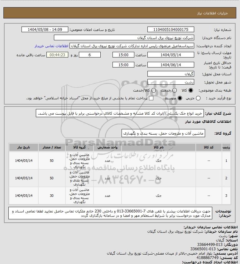 3 -- جک عدد ماشین آلات و ملزومات حمل، بسته بندی و نگهداری 30 1404/05/14