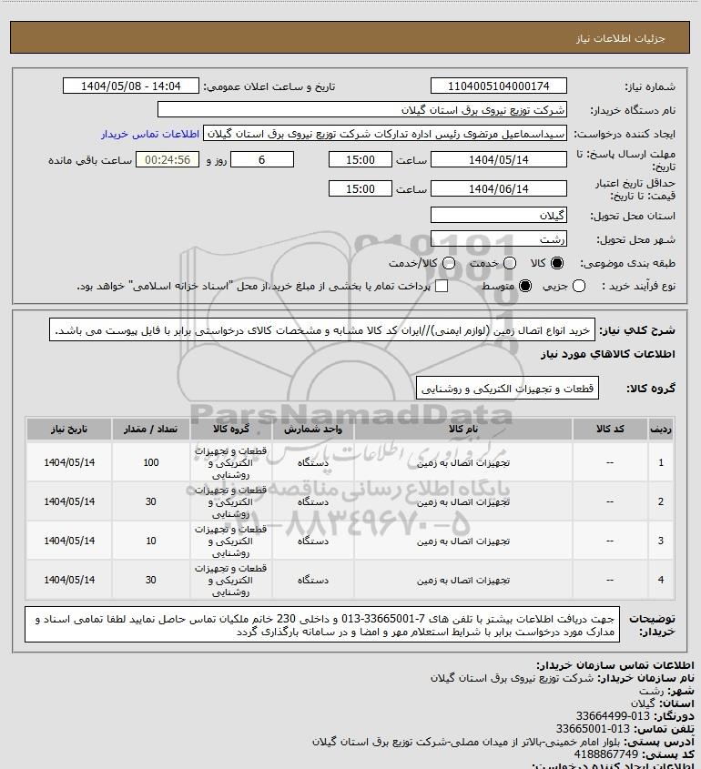 1 -- تجهیزات اتصال به زمین دستگاه قطعات و تجهیزات الکتریکی و روشنایی 100 1404/05/14