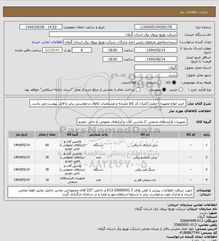شرح کلی نیاز: خرید انواع تجهیزات ایمنی//ایران کد کالا مشابه و مشخصات کالای درخواستی برابر با فایل پیوست می باشد.