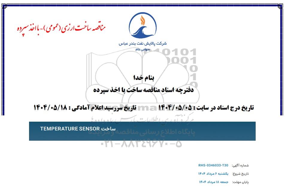 مناقصه ساخت temperature SENSOR از کلیه افراد متخصص و شرکتها واجد شرایط دعوت به عمل میآید در مناقصه با کد خبرگزاری پارس نماد: 9346249 شرکت نمایند.