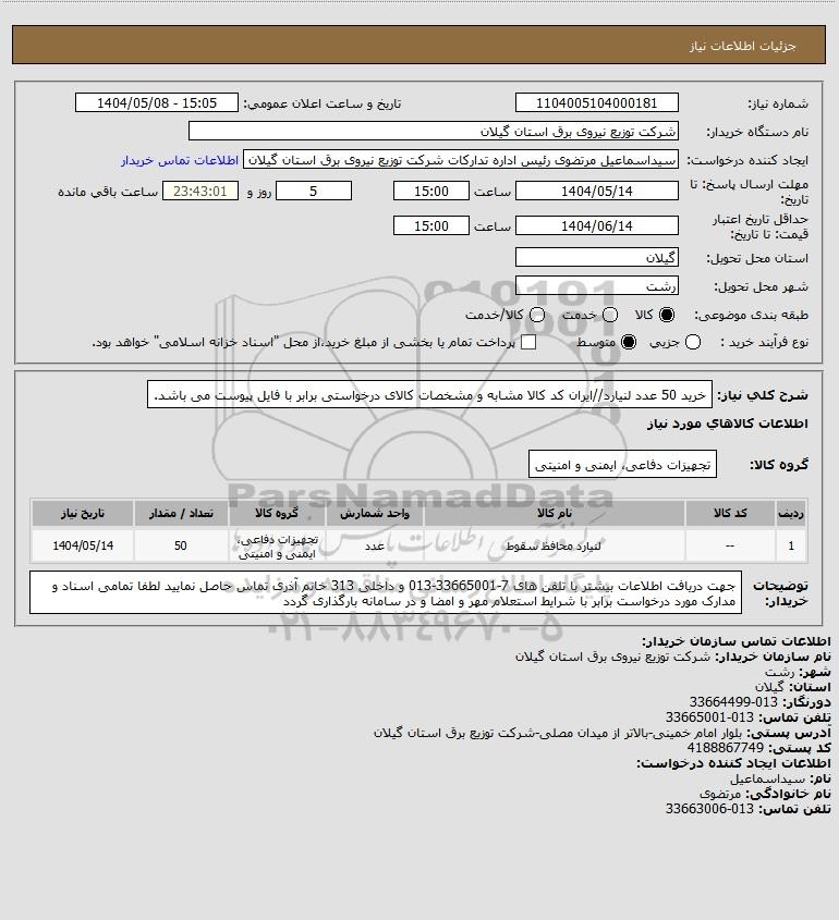 1 -- لنیارد محافظ سقوط عدد تجهیزات دفاعی، ایمنی و امنیتی 50 1404/05/14
